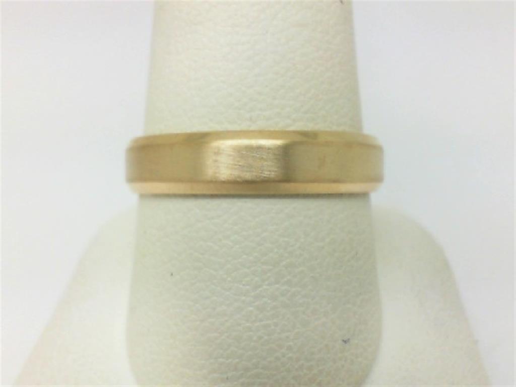 LITE GENT'S YELLOW 14 KARAT SATIN CENTER FLAT BEZEL EDGE CARVED BAND WEDDING BAND