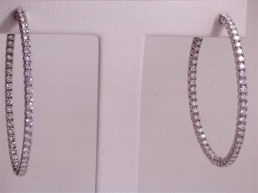 WHITE 14 KARAT INSIDE OUT OVAL HOOP LAB GROWN DIAMOND EARRINGS WITH 3.50TW ROUND DIAMONDS