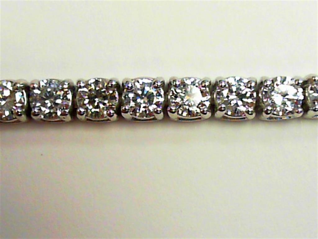 WHITE 14 KARAT 4 PRONG BASKET LAB GROWN DIAMOND TENNIS BRACELET WITH = 5.17TW ROUND LAB GROWN DIAMONDS