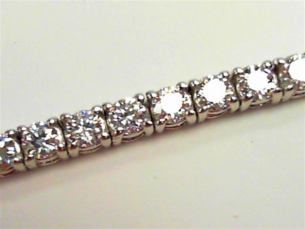 WHITE 14 KARAT 4 PRONG BASKET LAB GROWN DIAMOND TENNIS BRACELET WITH = 4.35TW ROUND LAB GROWN DIAMONDS