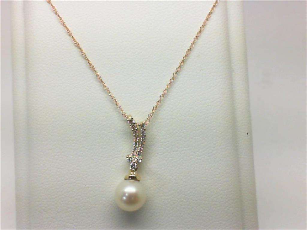 LADY'S YELLOW 14 KARAT DROP DIAMOND AND PEARL PENDANT WITH 0.15TW **DUE TO THE SETTING STYLE OF THESE PENDANT THE LOSS OF STONES MAY BE EXPECTED FROM TIME TO TIME.**