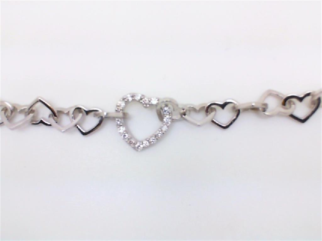 STERLING SILVER HEART LINK BRACELET WITH ROUND CUBIC ZIRCONIAS
