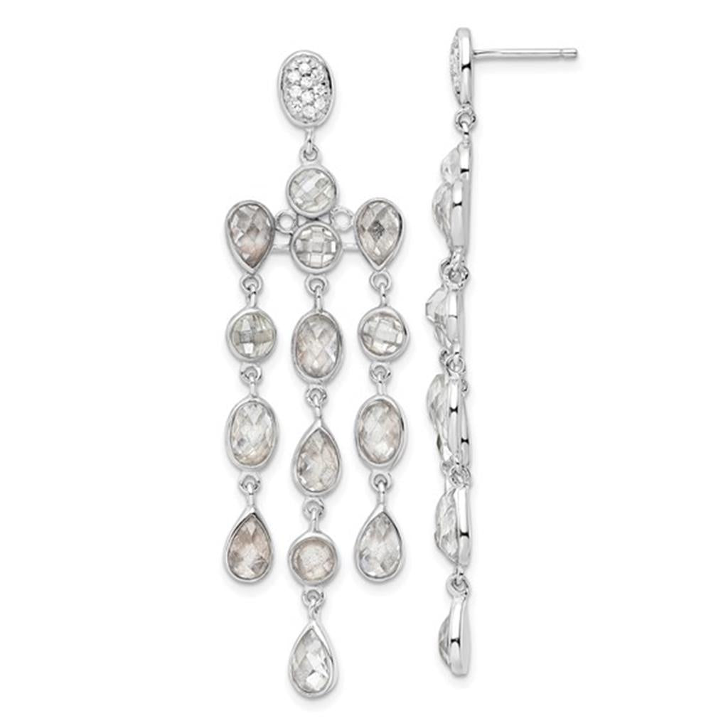 LADY'S STERLING SILVER MULTI ROW EARRINGS WITH VARIOUS SHAPES CUBIC ZIRCONIAS