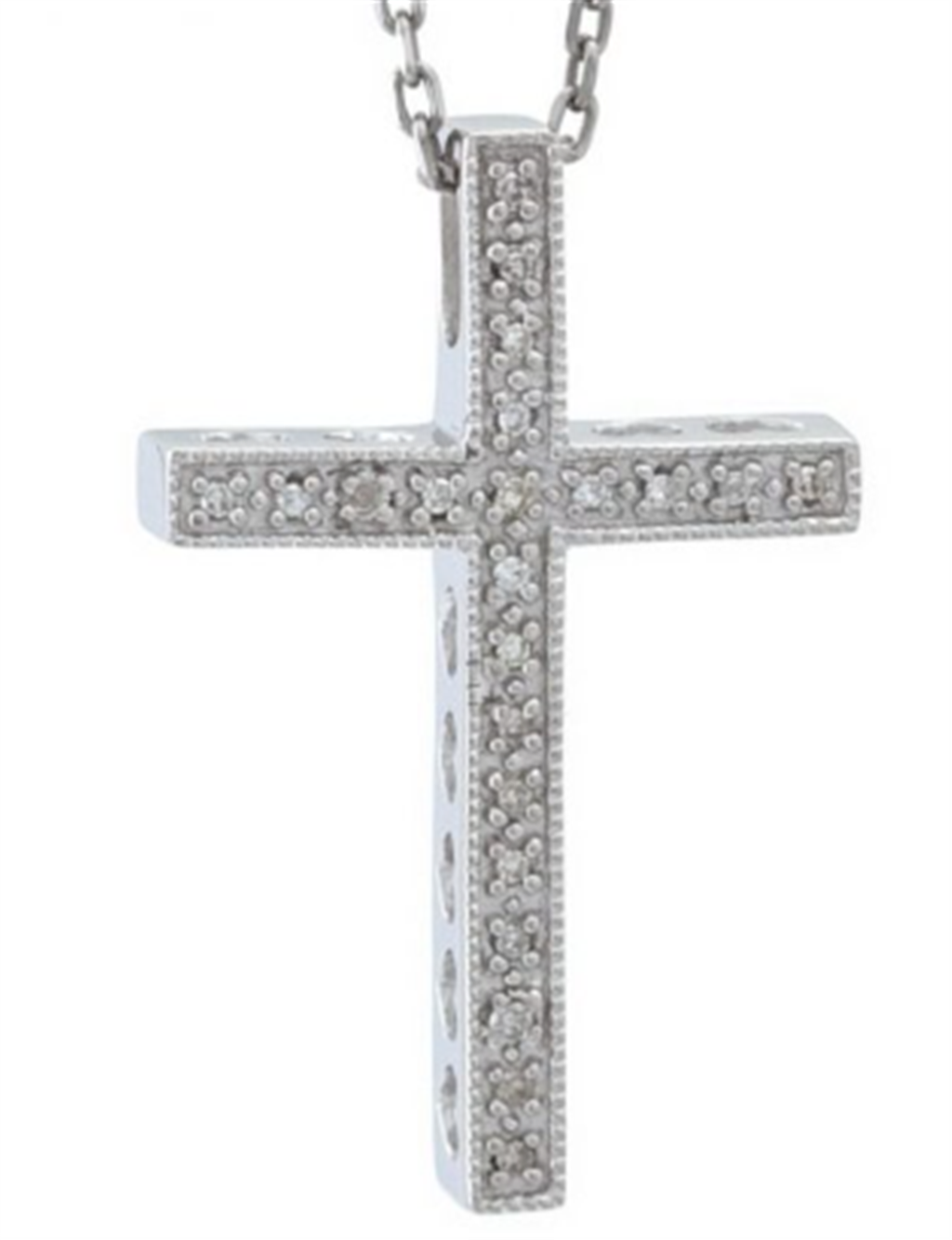 LADY'S STERLING SILVER MILGRAIN CROSS PENDANT WITH = 0.07TW ROUND SINGLE CUT DIAMONDS