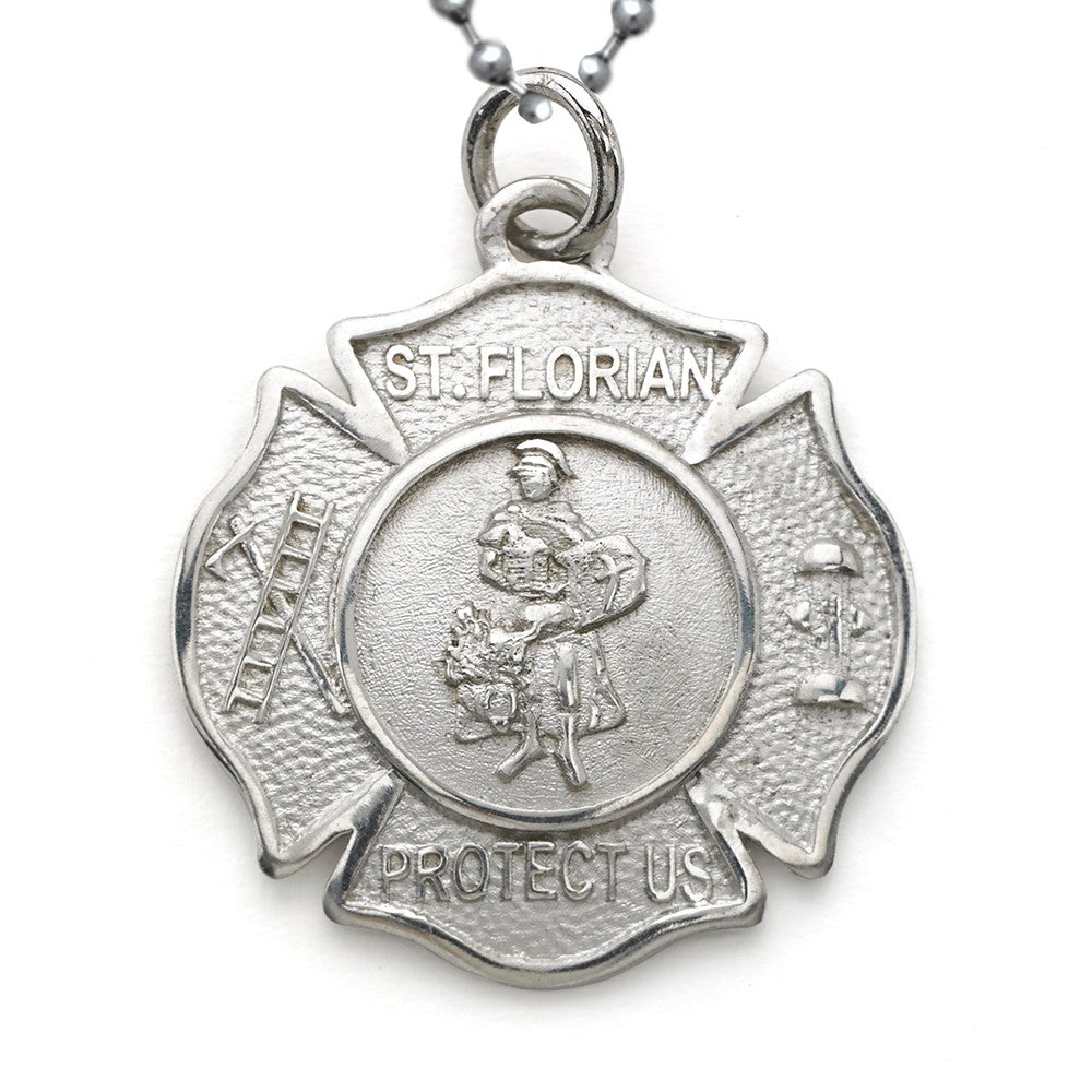 St. Florian Medal and Chain - Sterling Silver Quarter Size Pendant